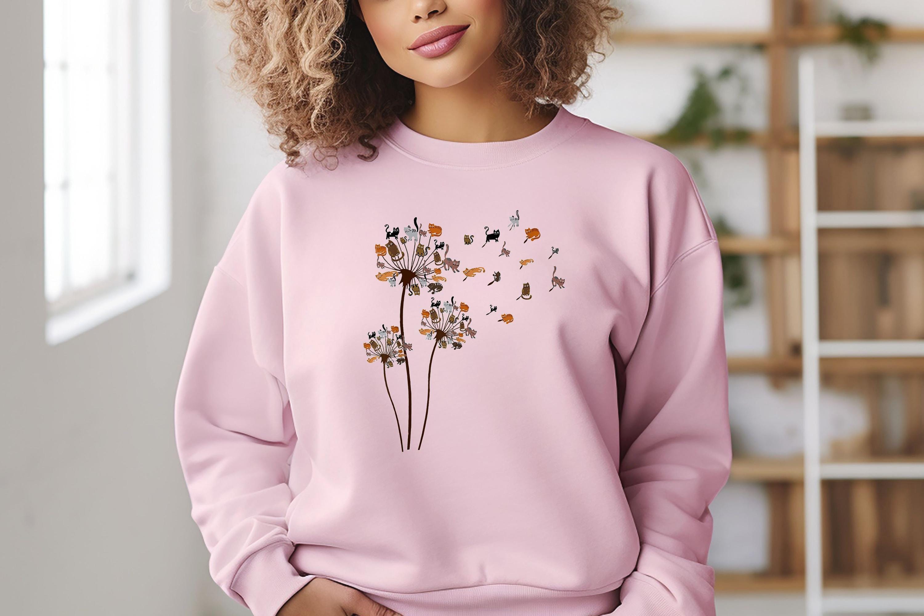Cats Flower Fly Dandelion Sweatshirt, Cute Cat Lover Crewneck, Cat Lover Gift, Funny Cat Hoodie, Dandelion Cat Shirt, Cool Cat, Cat Crewneck